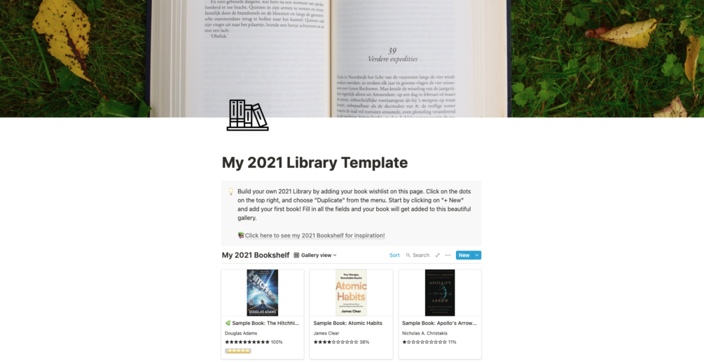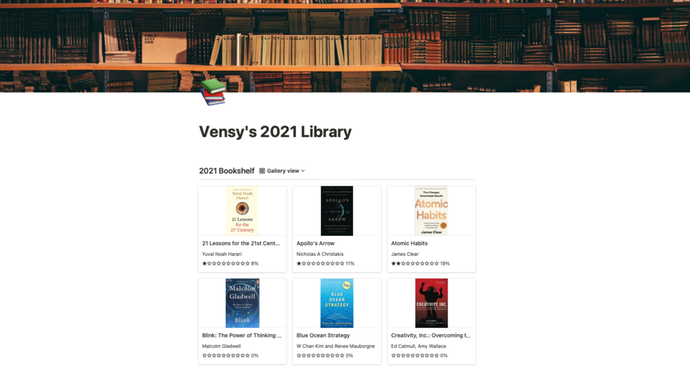 A Notion template for a gorgeous bookshelf you can build in minutes.