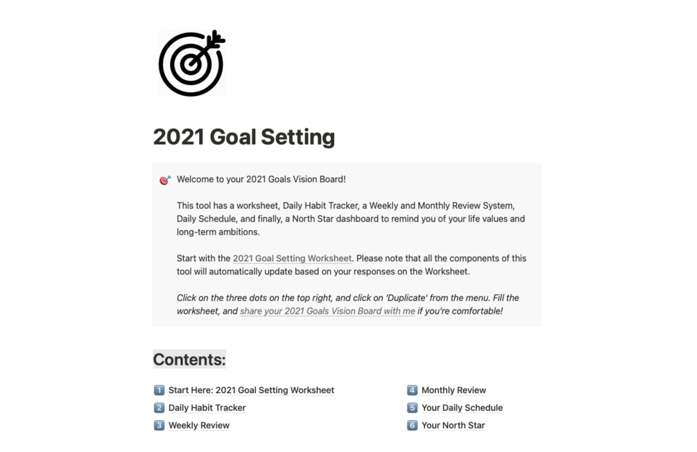 You'll get a 2021 Goal-Setting Tool